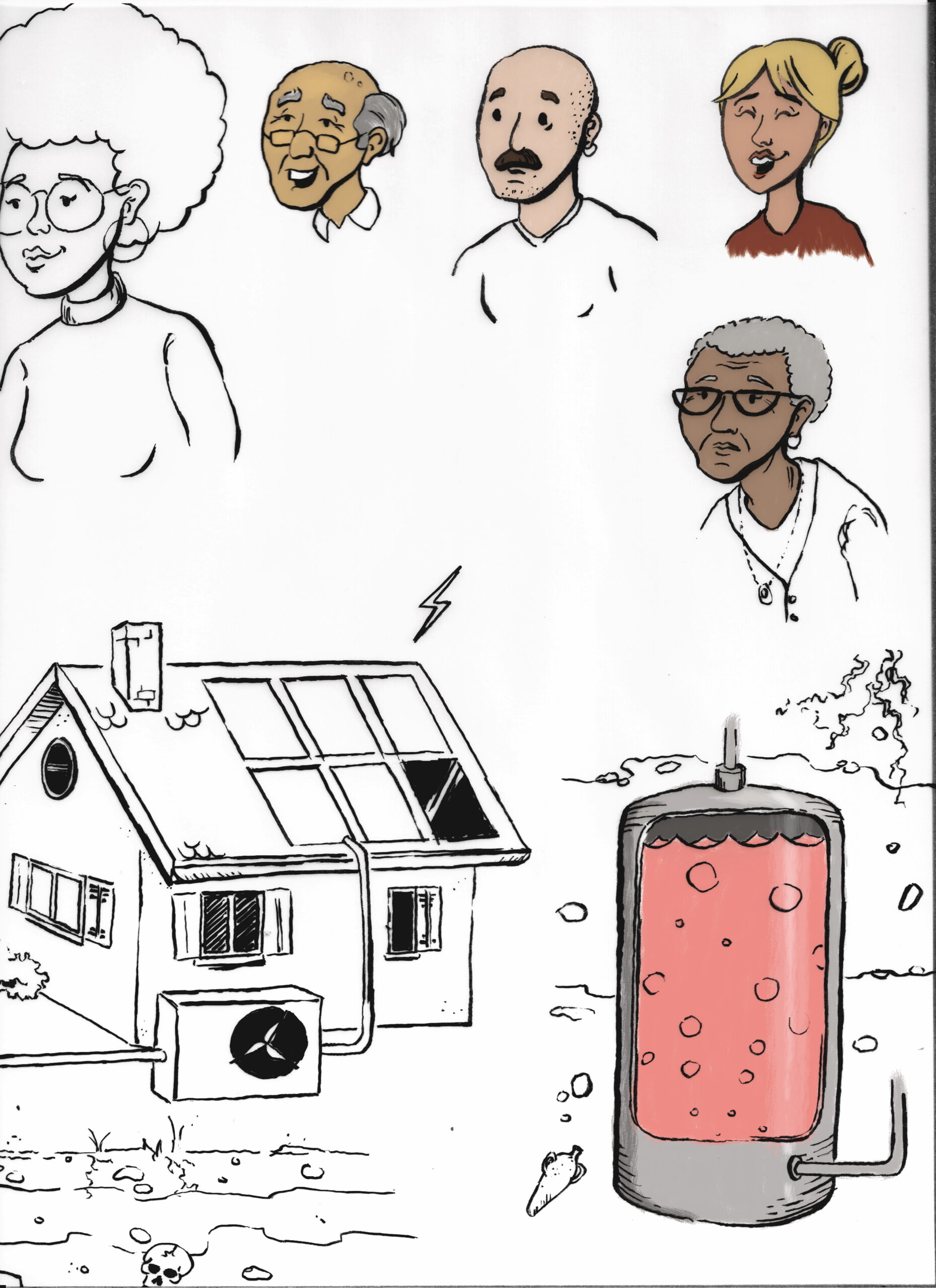 Für die Umsetzung des Films haben wir beschlossen, Handzeichnungen mit dem Programm «Aftereffects» zu animieren. Damit sollte der Charakter der Handzeichnungen bewahrt und eine skizzenhafte Darstellung erreicht werden. In der Galerie weiter unten, sind die Handgezeichneten Figuren und Objekte zu sehen, wie sie auf dem Blatt gezeichnet und angeordnet wurden.