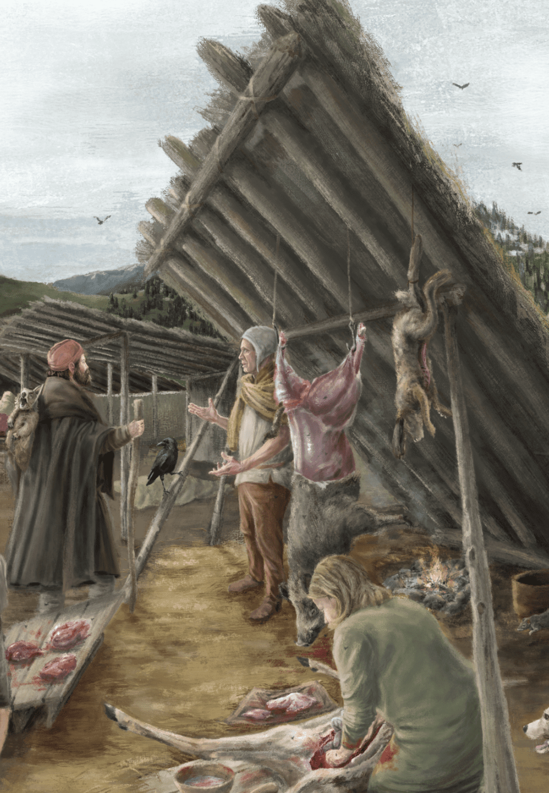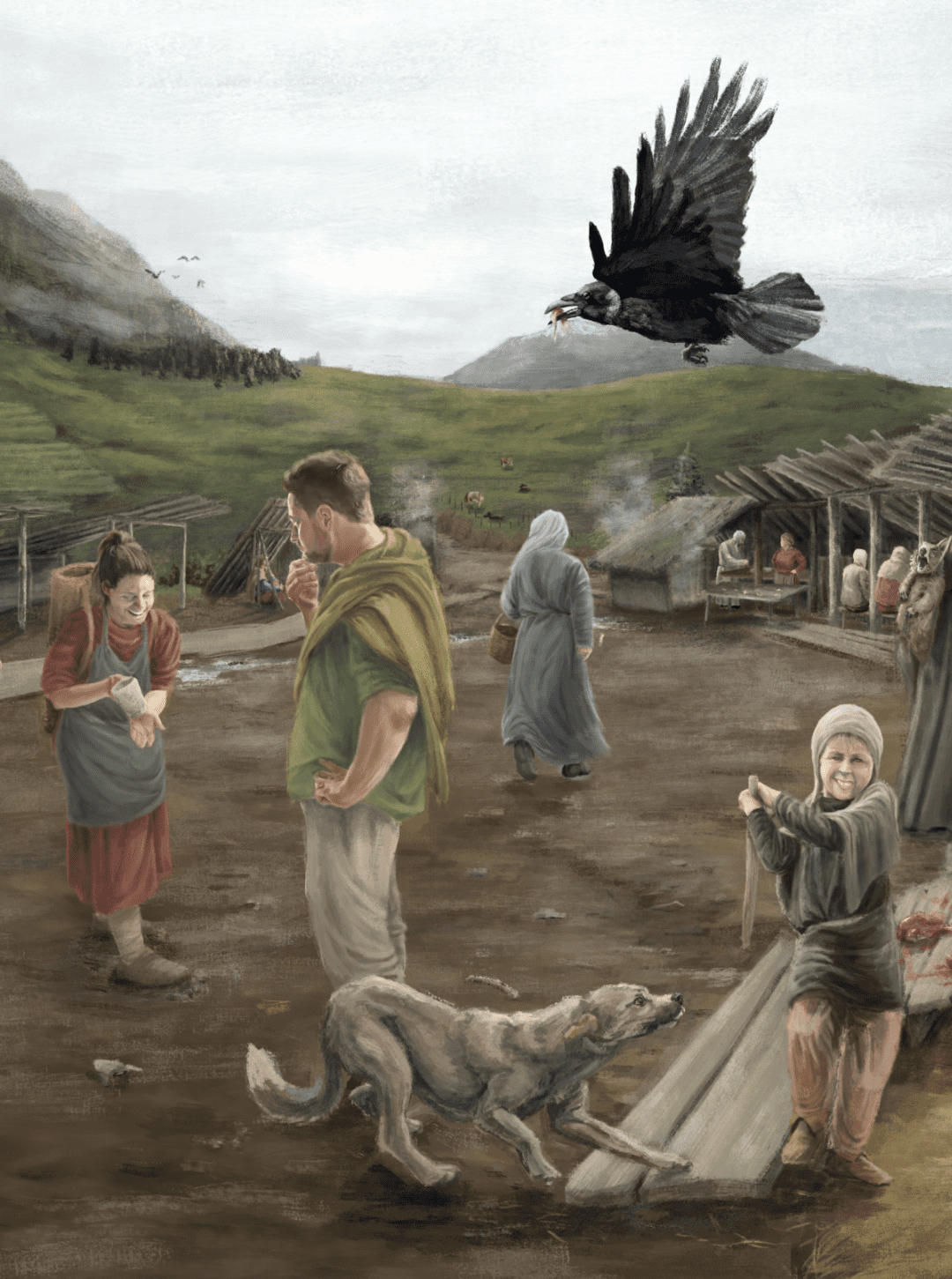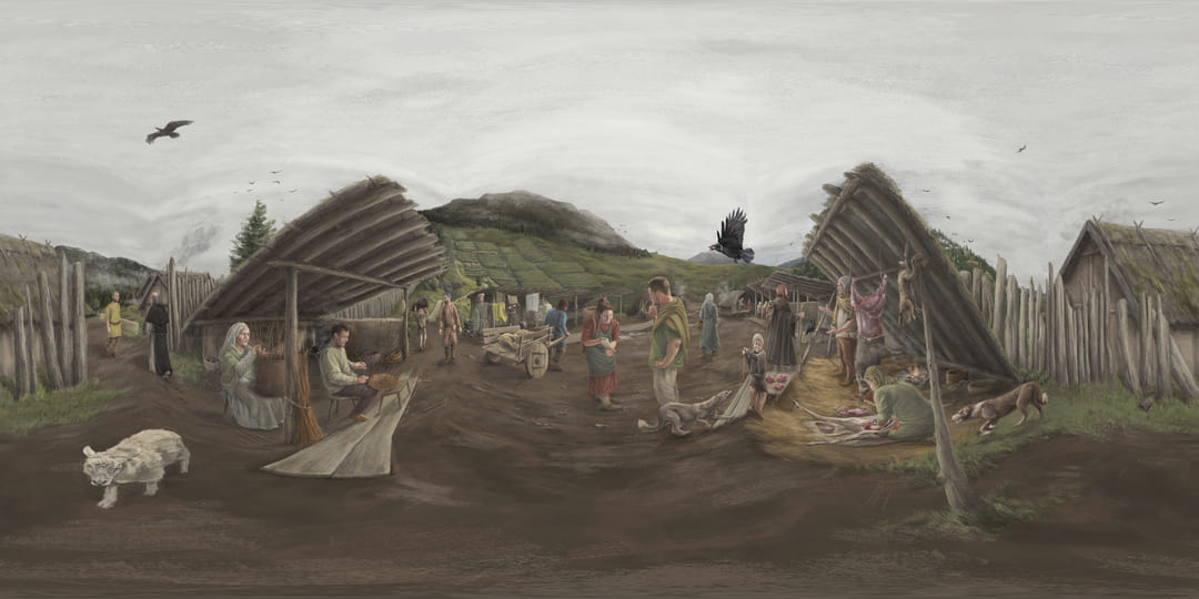 In Kooperation mit der Kantonsarchäologie Graubünden durfte ich meine Bachelorarbeit über das kürzlich ausgegrabene Handwerksquartier in Chur machen. In einer Ausstellung über den mittelalterlichen Handel zwischen den Alpen und dem Bodenseeraum sollte es ermöglicht werden, sich ein Bild der verschiedenen nachgewiesenen Handwerke zu machen. Man entschied sich für die Ausführung eines Kugelbilds, um diese Ziele zu erreichen. Das Kugelbild oder 360°-Panorama erlaubt es, mit Hilfenahme einer VR-Brille sich in andere Zeiten und Räume zu begeben. Das Bild selbst ist zweidimensional in Photoshop gezeichnet und wurde am Computer so verzerrt, dass es in die virtuelle Kugel passt. Für einmal muss dass Eckige in das Runde, wenn auch weit weg vom sportlichen Kontext.