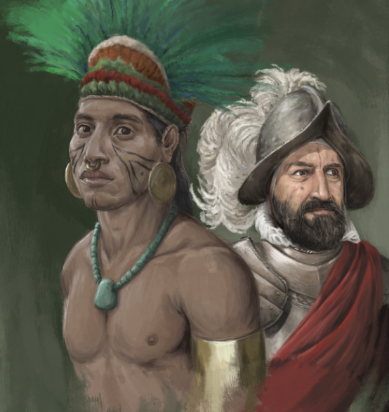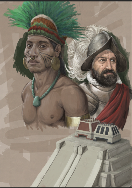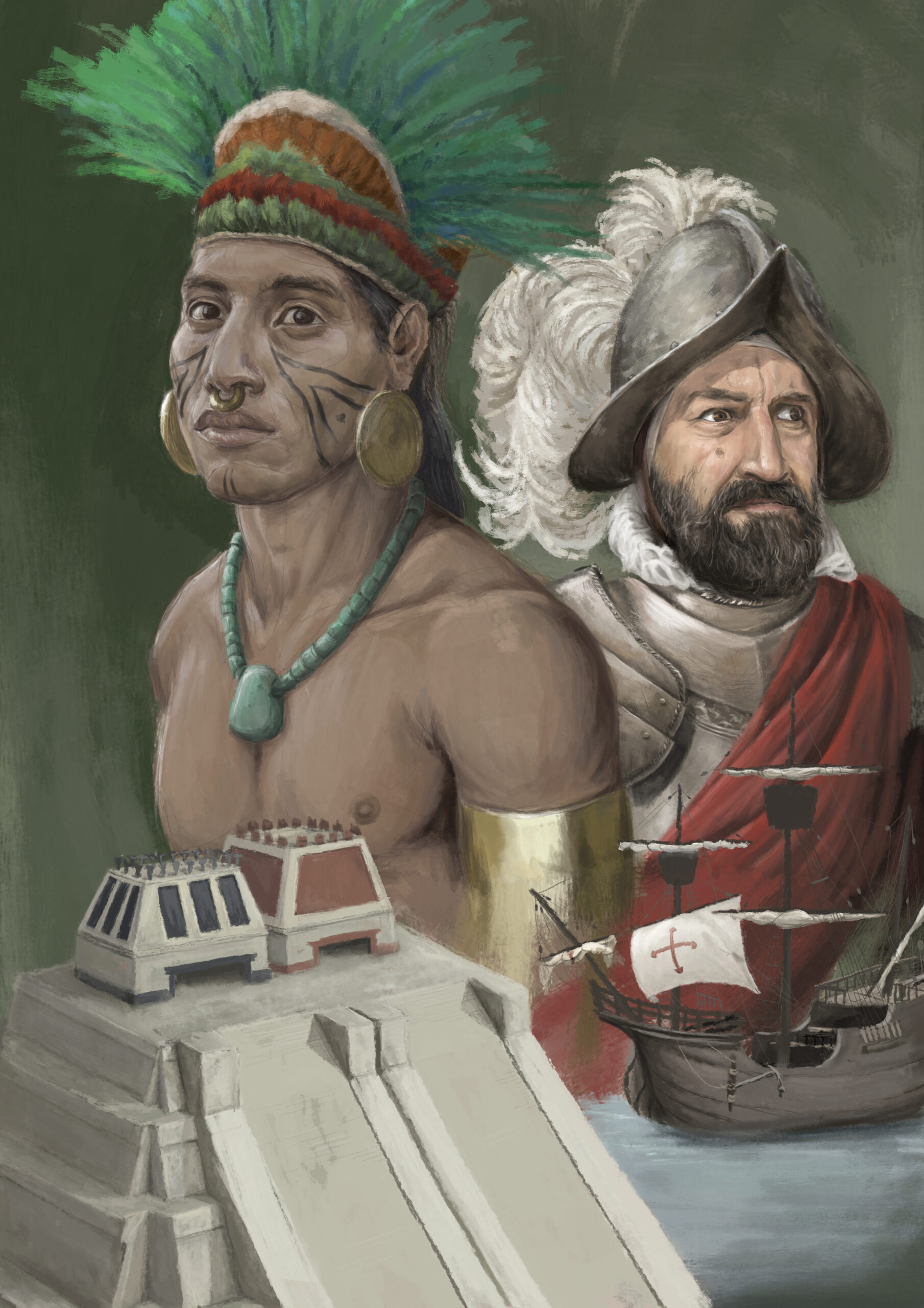Um mein Portfolio zu erweitern und natürlich auch am Spass an der Freude, habe ich dieses fiktive Titelbild gestaltet. Das Bild soll den Untergang der Azteken thematisieren und mit einem plakativen Stil, die Lust auf den dahinterstehenden Inhalt wecken.